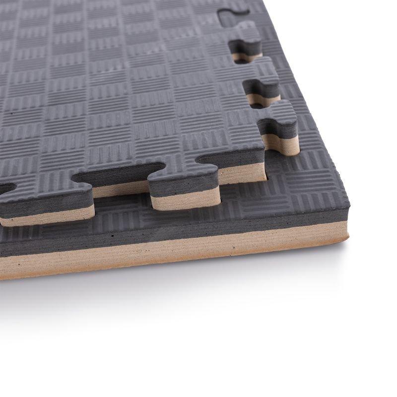 Δάπεδο προπόνησης από πυκνό EVA foam που προσφέρει απορρόφηση κραδασμών, μείωση θορύβου και προστασία δαπέδου και εξοπλισμού. Η επιφάνεια όψης ξύλου χαρίζει κομψή αισθητική, ενώ το πάχος 2,5 cm εξασφαλίζει άνεση και ασφάλεια. Σχεδιασμός puzzle για εύκολη συναρμολόγηση και σταθερή επιφάνεια. Ιδανικό για pilates, yoga, martial arts, functional και home gym.