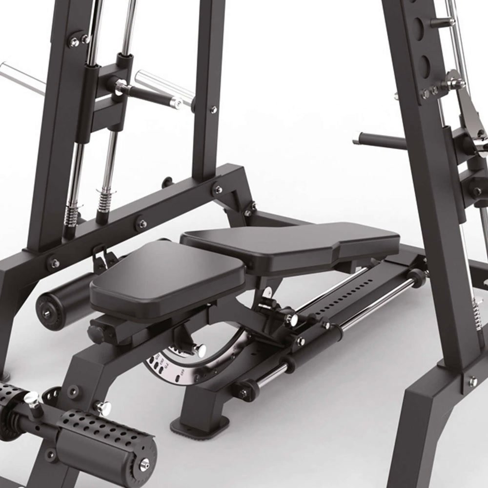 Ο πάγκος προσφέρει ρύθμιση ύψους καθίσματος σε 4 επίπεδα, ρύθμιση θέσης καθίσματος εμπρός/πίσω σε 26 επίπεδα και ρύθμιση κλίσης πλάτης σε 8 επίπεδα από -15° έως 85°, καλύπτοντας μεγάλη ποικιλία ασκήσεων. Το μηχάνημα είναι συμβατό με ολυμπιακούς δίσκους Φ50mm (δεν περιλαμβάνονται), διαθέτει 4 βάσεις αποθήκευσης δίσκων και πιστοποιείται για επαγγελματική χρήση σύμφωνα με EN20957-1 και EN957-2 (Class S).