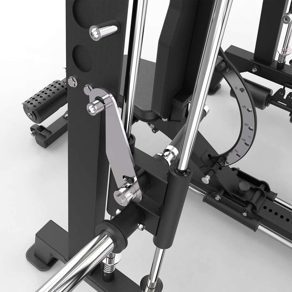 - Smith λειτουργία με ρυθμιζόμενα safety hooks. Η μπάρα διαθέτει ρύθμιση ύψους γάντζων ασφαλείας σε 5 επίπεδα για ασφαλή και πρακτική χρήση.