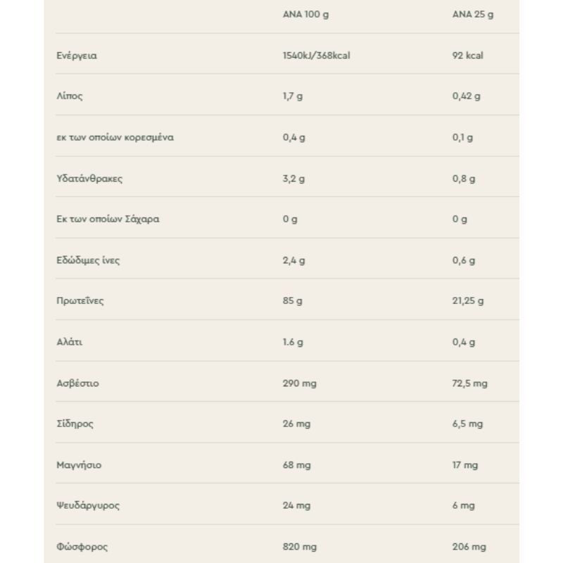 Περιέχει όλα τα απαραίτητα αμινοξέα που χρειάζονται για τον οργανισμό, ενώ διαθέτει υψηλά επίπεδα αργινίνης.